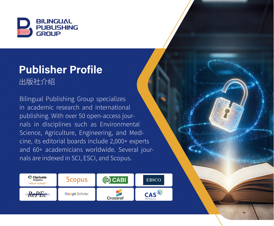 As a prominent player in the global academic publishing landscape, the Bilingual Publishing Group remains committed to advancing international academic mutual trust and cultural mutual learning through publishing.